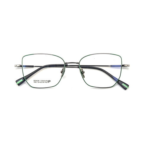 กรอบแว่นตาโลหะเบาสไตล์โมเดิร์นเมมโมรีโลหะผสมไททาเนียมกันสีฟ้าสำหรับผู้หญิงผู้ชายรูปแบบสี่เหลี่ยมทึบสำหรับผู้หญิง