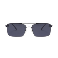 แว่นกันแดดกันแสงยูวีของผู้ชายแบบคลาสสิกพร้อมกล่องลวดลายทึบเลนส์สีดำไร้กรอบโลหะคู่